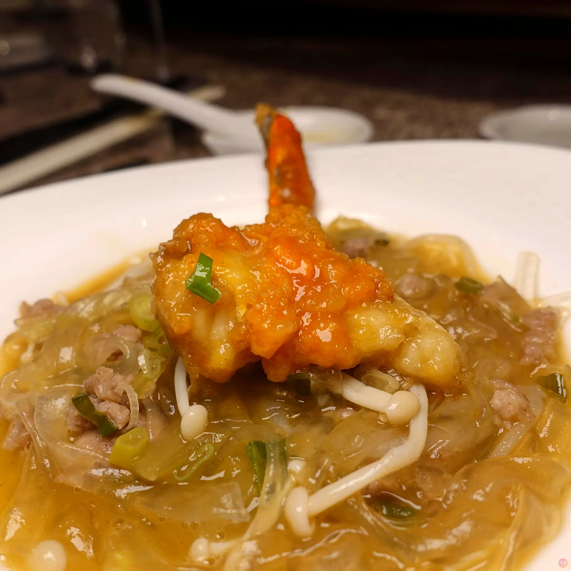 • 蟲草花鮑魚燉雞大閘蟹粉撈麵