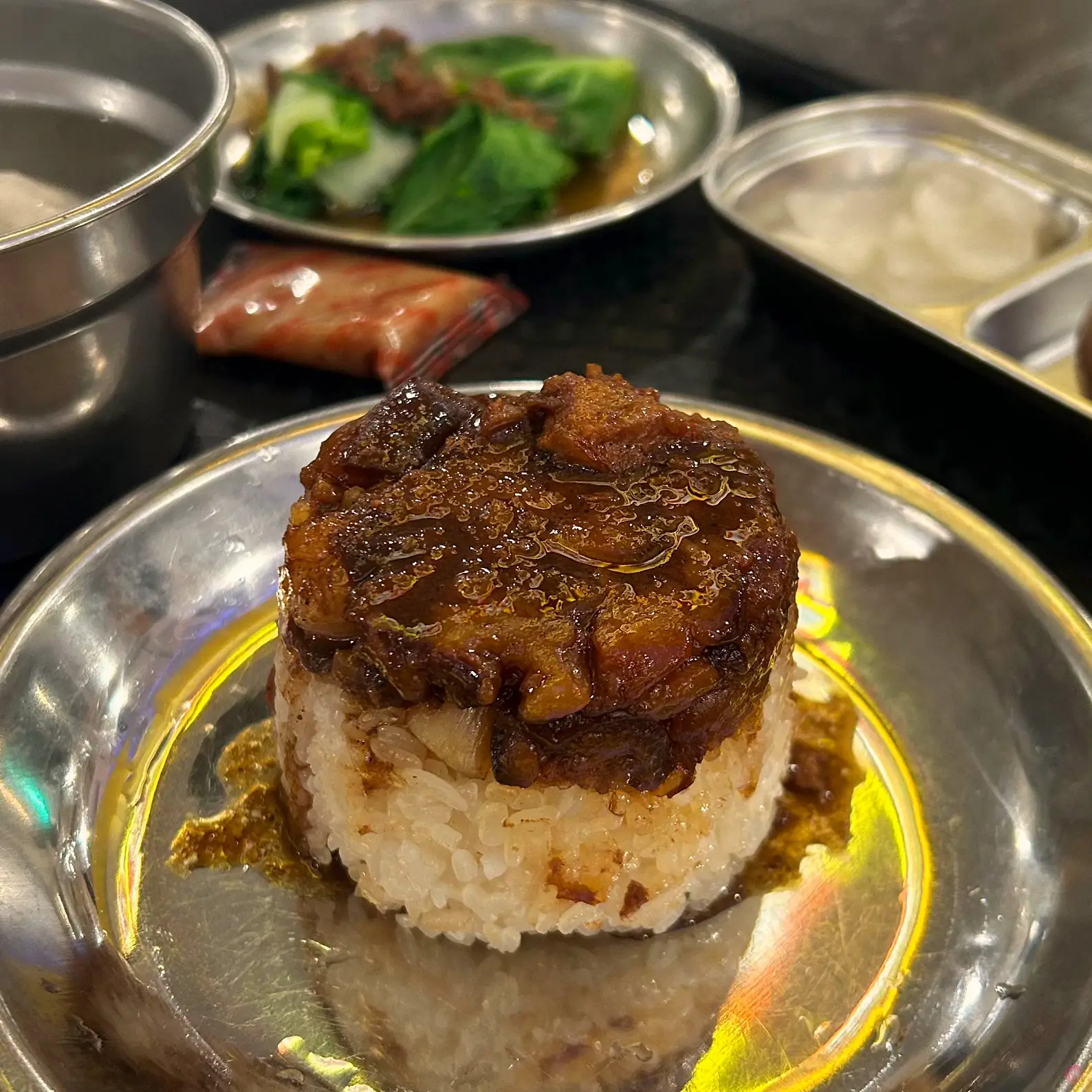 王塔米糕呢,實在不知道在做什麼,應該都是央廚做好,然後在現場加熱的,米糕外層有硬硬外殻,裡面雖軟,但也是食之無味,最後是加了很多台中名產東泉辣醬才吃了一半