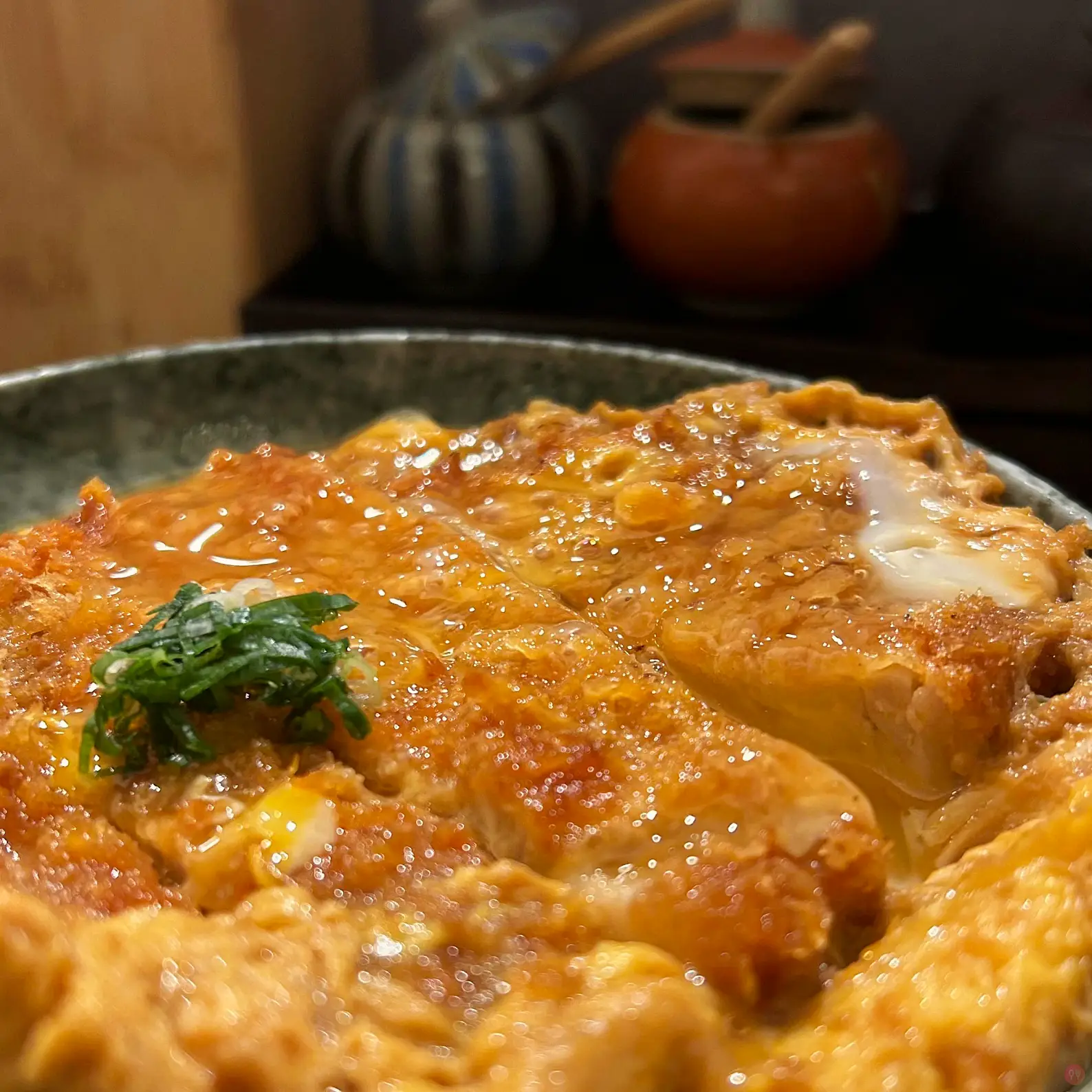 豬排蓋飯的蛋,整個打散沾在豬排上,而且是半熟的,整個蛋香滿滿,很棒
