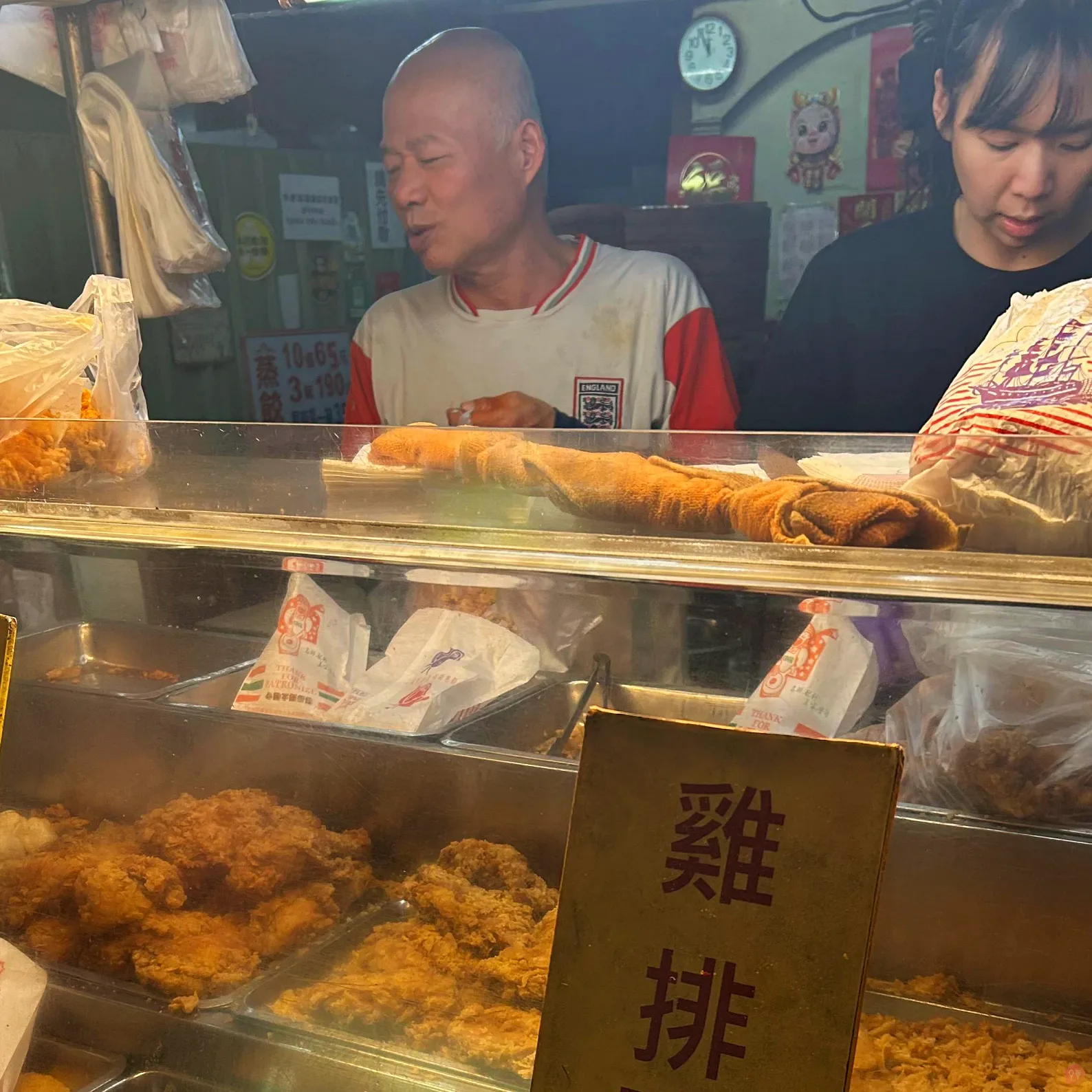 他就是古早古早雞排本人,沒有太多的胡椒或是什麼醬料調味,對比現在外面的雞排而言,味道比較乾淨,沒有太多的修飾,直球對決