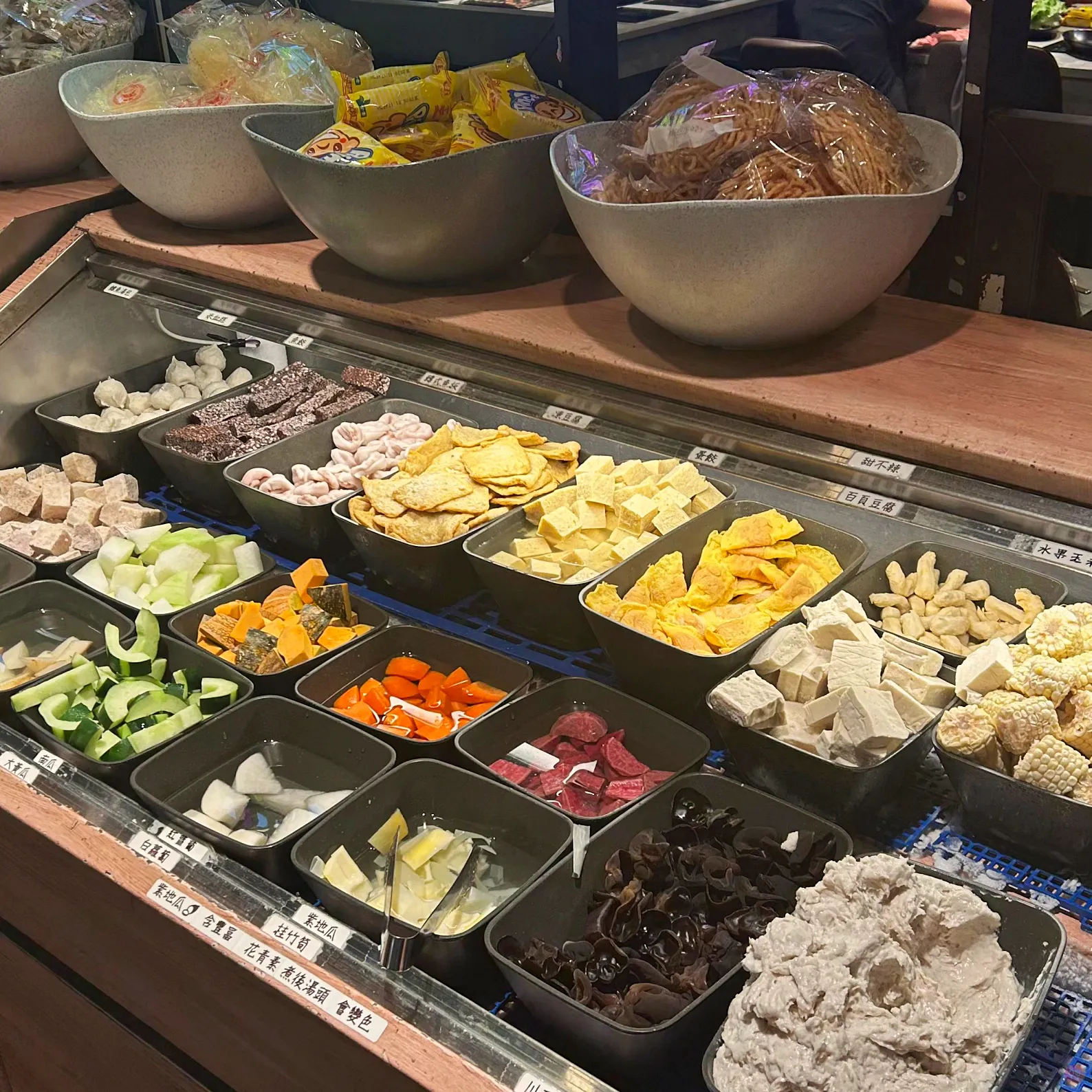 這一間環境很好,場地蠻大的,自助蔬菜區有二區。除了自助區外,還有推車提供隱藏版的火鍋料